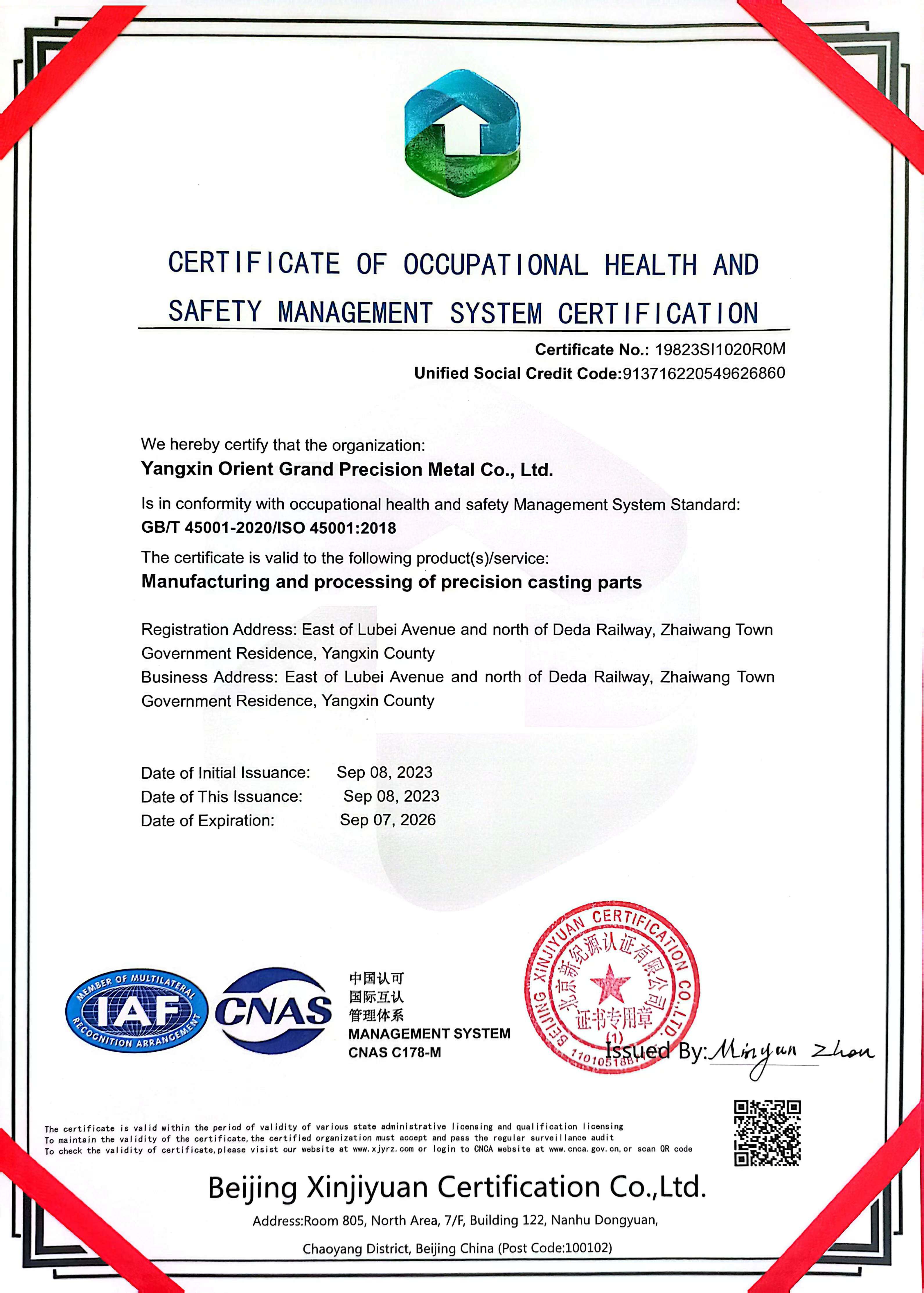 Yangxin Orient Grand Precision Metal Co., Ltd расположена в дельте реки Хуанхэ в Китае, которая близка к порту Циндао. Наша литейная фабрика занимает площадь около 35 000 квадратных метров и имеет более 200 сотрудников. Годовая производственная мощность составляет 1200 тонн. С 18-летним опытом Orient Cast специализируется на производстве восковых литьев по технологии силикатного раствора из материалов, таких как нержавеющая сталь, углеродистая сталь, легированная сталь, инструментальная сталь, коррозионно-стойкая сталь, жаростойкая сталь, специальная высоколегированная сталь и некоторые медные и алюминиевые сплавы. Чтобы предоставить вам готовые продукты, мы также можем предложить услуги механической обработки, а также обработку поверхности. Наши продукты широко используются в таких областях, как строительство, насосы и вентили, промышленные замки, морское оборудование, строительная техника, медицинское оборудование, пищевая техника, автомобили, термическая обработка оборудования, горнодобывающая промышленность, нефтехимическая промышленность, упаковочное оборудование, оборонная промышленность, аэрокосмическая промышленность и др. Профессиональная техническая R&D группа поможет вам спроектировать литейный процесс в соответствии с вашими чертежами и требованиями. Более того, Orient Cast гордится существенной системой контроля качества, которая хорошо реализуется нашими сотрудниками отдела контроля качества. С сертификатом ISO9001:2015 от DNV и рядом оборудования для контроля качества у нас есть уверенность и возможность предоставить вам высококачественные литейные изделия. В целом, все, что мы делаем, направлено на "удовлетворение потребностей клиентов". Мы установили плавные долгосрочные партнерские отношения с нашими клиентами из США, Великобритании, Франции, Нидерландов, Австралии, Японии и региона Тайвань и др. Поскольку мы являемся литейной фабрикой, предоставляющей полный спектр услуг, мы предложим вам идеальные решения для вашего проекта по литью воском!